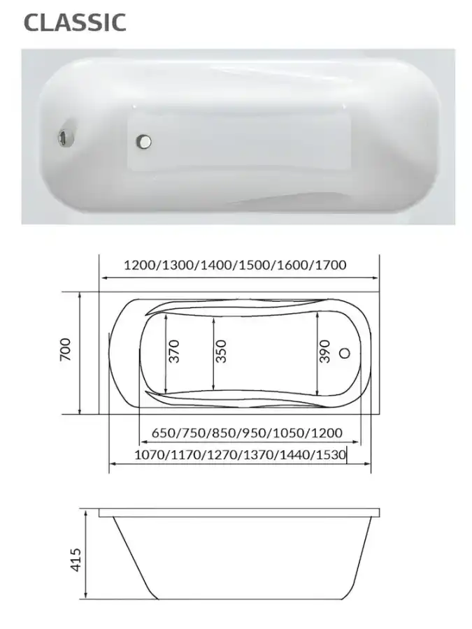 Акриловая ванна 1Marka CLASSIC 120х70 Прямоугольная Белая 01кл1270 А