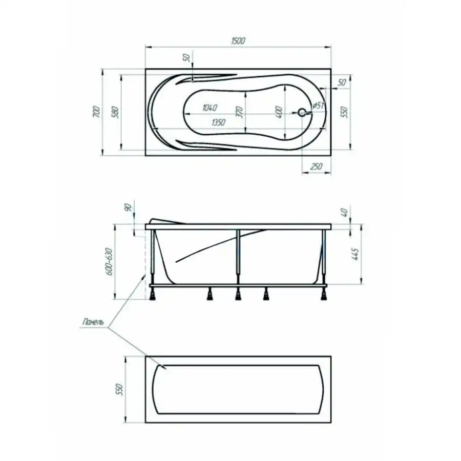 Акриловая ванна 1Marka MEDEA 150х70 Прямоугольная белая 01ме1570.