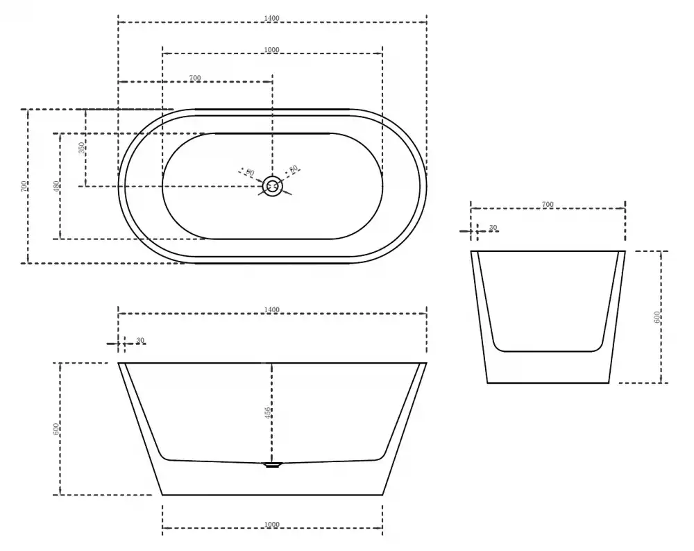 Акриловая ванна Abber 140х70 AB9203-1.4, отдельностоящая, Белая глянцевая