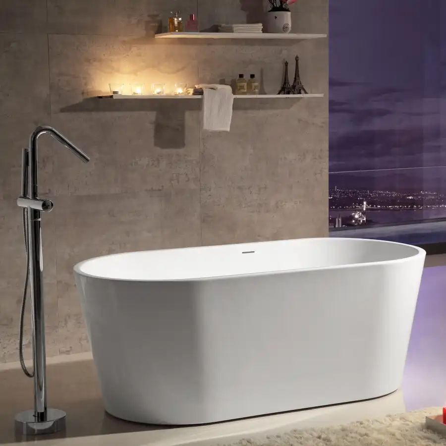 Акриловая ванна Abber 140х70 AB9203-1.4, отдельностоящая, в комплекте слив-перелив и каркас, Белая глянцевая.