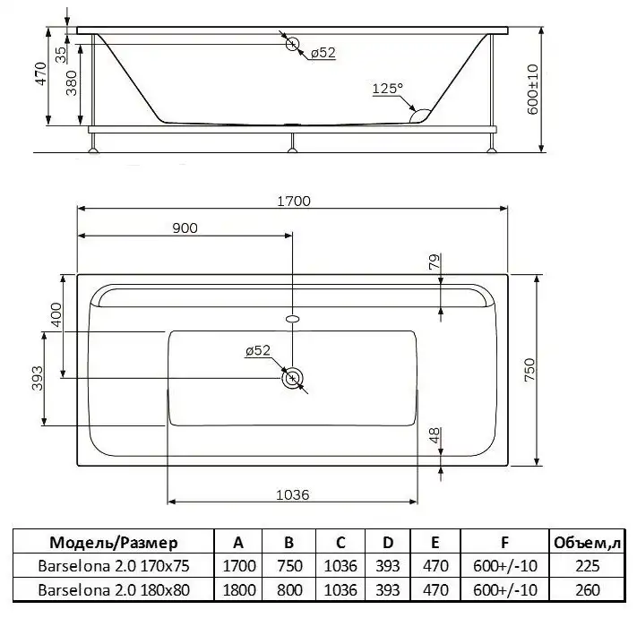 Акриловая ванна Alba Spa BARSELONA 2.0 170х75 прямоугольная, Белая. (ВПР0310200100) Опорная конструкция и слив-перелив приобретаются отдельно.