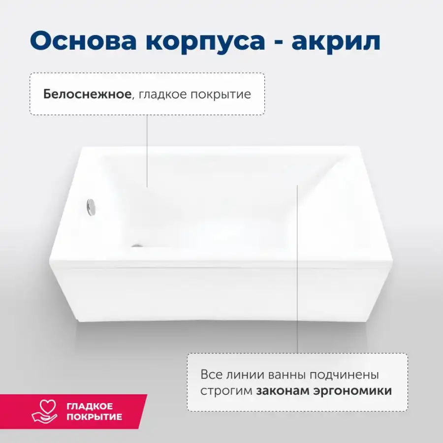 Акриловая ванна Aquanet Bright 155x70 создана с учетом растущего спроса на ванны простой прямоугольной формы в популярных размерах. Это модель с прямыми бортами и пологой спинкой, где соблюден идеальный угол для комфортного нахождения в ванне. Спинка плавно перетекает в бортик, поэтому релакс гарантирован даже без использования подголовника. Все линии ванны подчинены строгим законам эргономики. Ширина ванны 70 см при длине 155 см - это отличный вариант для маленьких ванных комнат. Чаша в этой ванне устроена таким образом, что для обозначенных размеров в ней достигнут максимально возможный внутренний объем, а именно 160 литров, и это при комфортной глубине в 416 мм от слива ванны до борта. Ванна рассчитана на нагрузку свыше 300 кг, так что даже крепкий мужчина сможет без опаски находиться в ней. Двойной слой армирования обеспечивает надежность чаши, а закладные из МДФ-плит в местах наибольшей нагрузки усиливают эффект. Ванна уже установлена на жесткий сварной каркас из металлического профиля. Металлические детали каркаса подвергаются трехступенчатой обработке, когда сначала профильная труба проходит абразивную зачистку на специальном станке, после чего готовые детали обрабатывают каустической содой, и, просушив, покрывают с помощью электростатического распылителя молотковой краской по металлу. Это гарантирует равномерность окрашивания и стойкость покрытия. Дополнительно необходимо выбрать фронтальную и/или боковую панель и слив-перелив с сифоном.
