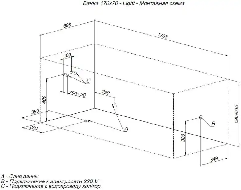 Акриловая ванна Aquanet Light 170x70 (с каркасом)