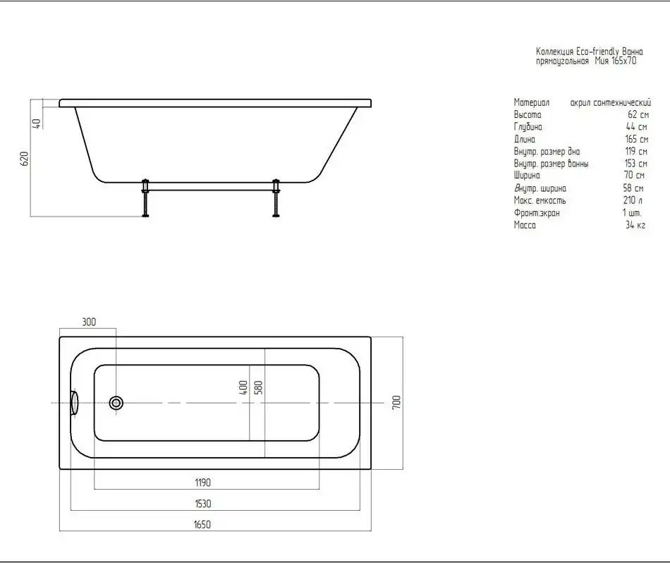 Прямоугольная ванна Мия, с жесткой опорной конструкцией, выпускается в трех самым популярных размерах 170x70, 160x70, 150x70 из экологически чистого и безопасного 100% акрилового листа Altuglas сохраняет привлекательную и доступную цену.