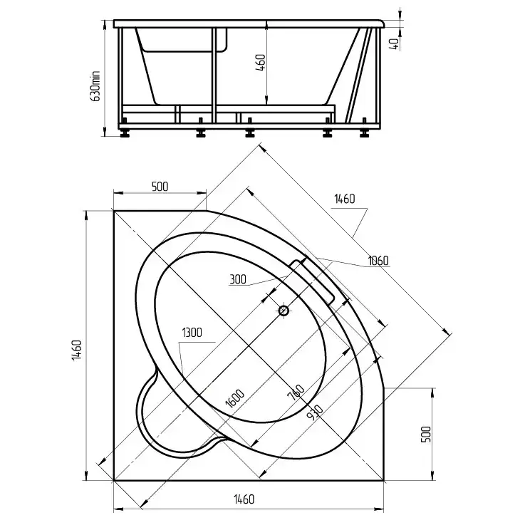 Ванна собранная на сварном алюминиевом каркасе, фронтальная панель, слив-перелив.