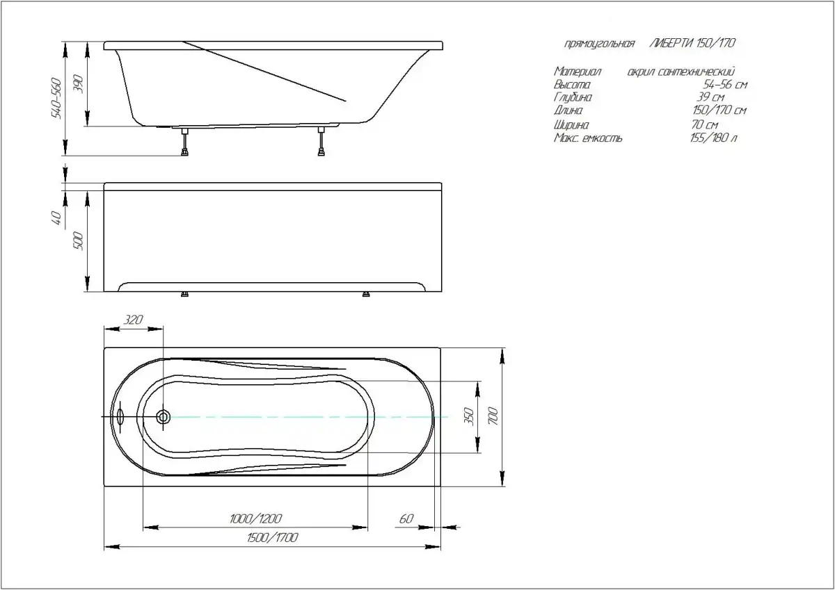 Акриловая ванна Aquatek Либерти Lifestyle 150x70 BER150-0000001.