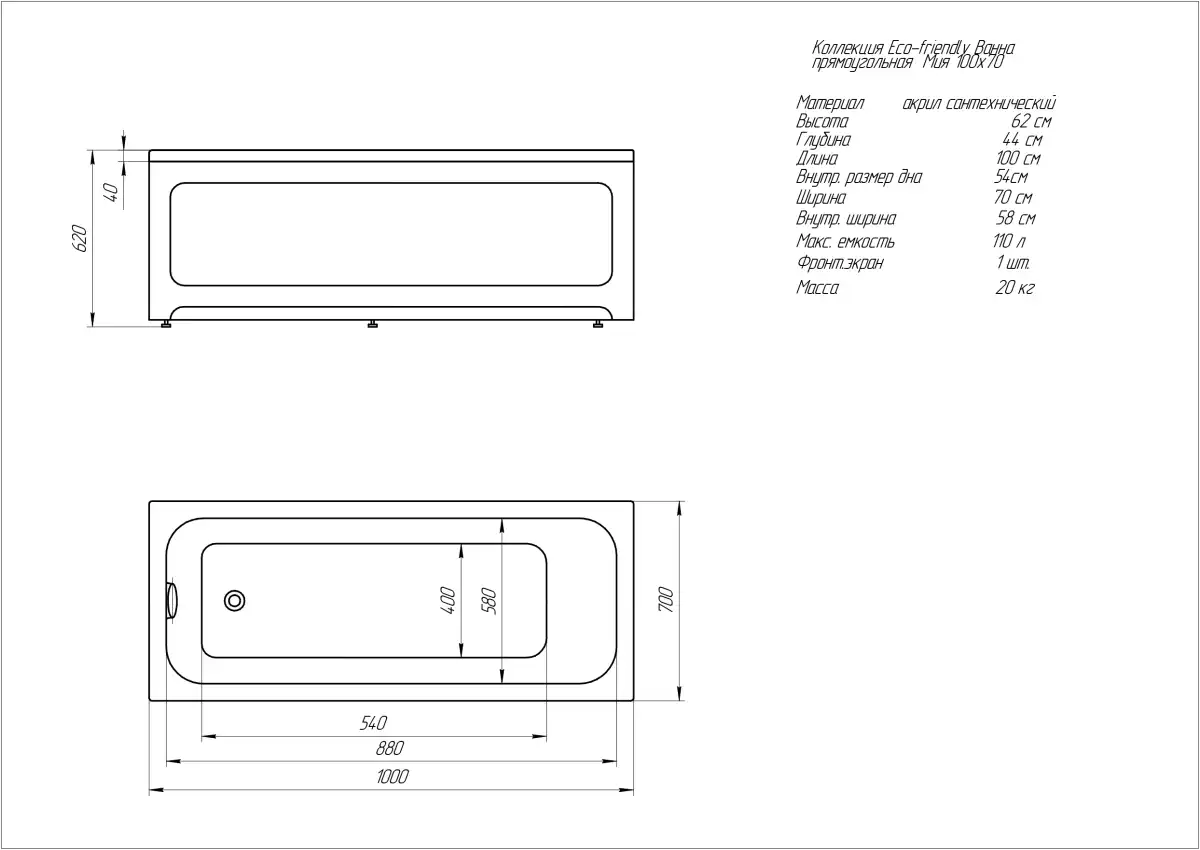 • Фронтальная панель к ванне Мия 100см - арт.# EKR-F0000103