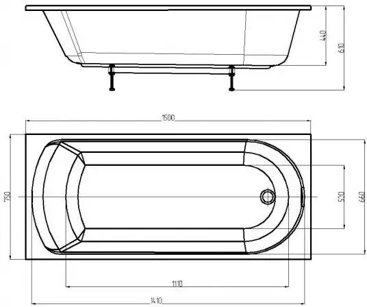 Акриловая ванна Aquatek Ника 150х75, Eco-friendly NIK150-0000001, Белая, без фронтального экрана, без слива-перелива, без опоры (каркаса).