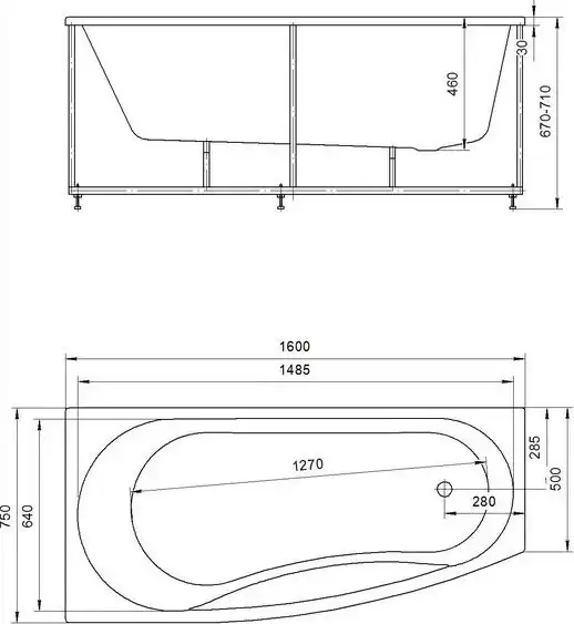 Внутр. размер ванны 148,5 см