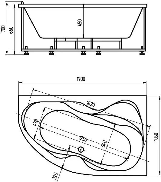Ванна собранная на сварном алюминиевом каркасе,фронтальная панель,слив-перелив.