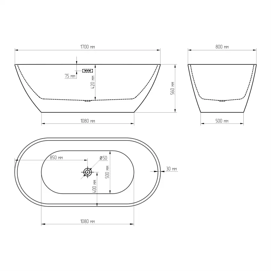 - Ванна акриловая литая