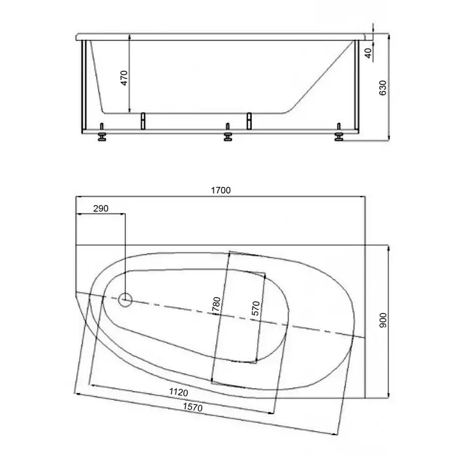 Акриловая ванна AZARIO KAPRIS 170х90 AV.0061170, асимметричная, правая