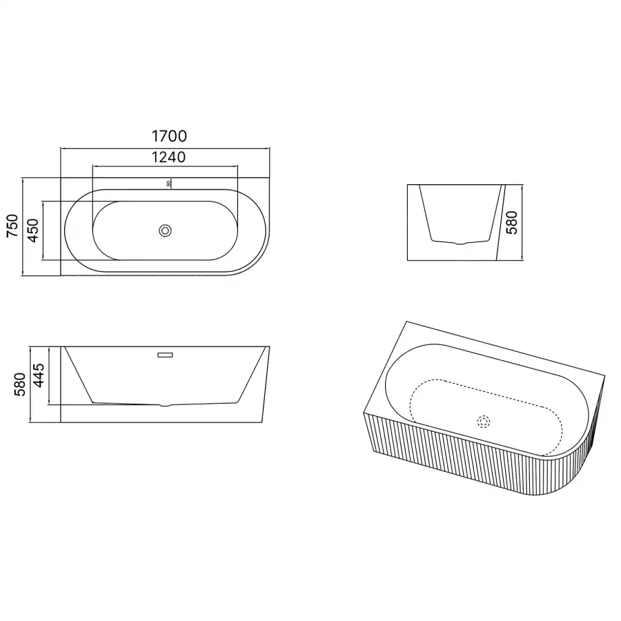 Акриловая ванна Azario LAGO GARDA – выполненная в размере 1700х750х580 мм, станет центральным элементом вашего пространства, предлагая исключительный комфорт и долговечность. Пристенная установка: Благодаря своей конструкции, ванна идеально впишется в пространство вашей ванной комнаты, создавая гармоничный и завершенный образ. Левосторонняя ориентация: Продуманная эргономика левосторонней модели обеспечивает максимальное удобство использования, позволяя вам расслабиться и насладиться водными процедурами. Рифленая внешняя поверхность: Уникальная рифленая текстура внешней поверхности не только придает ванне изысканный и современный вид, но и обеспечивает дополнительное сцепление, предотвращая скольжение и повышая безопасность. В комплекте с ванной поставляется высококачественный сифон и надежная металлическая рама, обеспечивающая устойчивость, долговечность и простоту монтажа. Рама гарантирует равномерное распределение нагрузки и предотвращает деформацию ванны.
