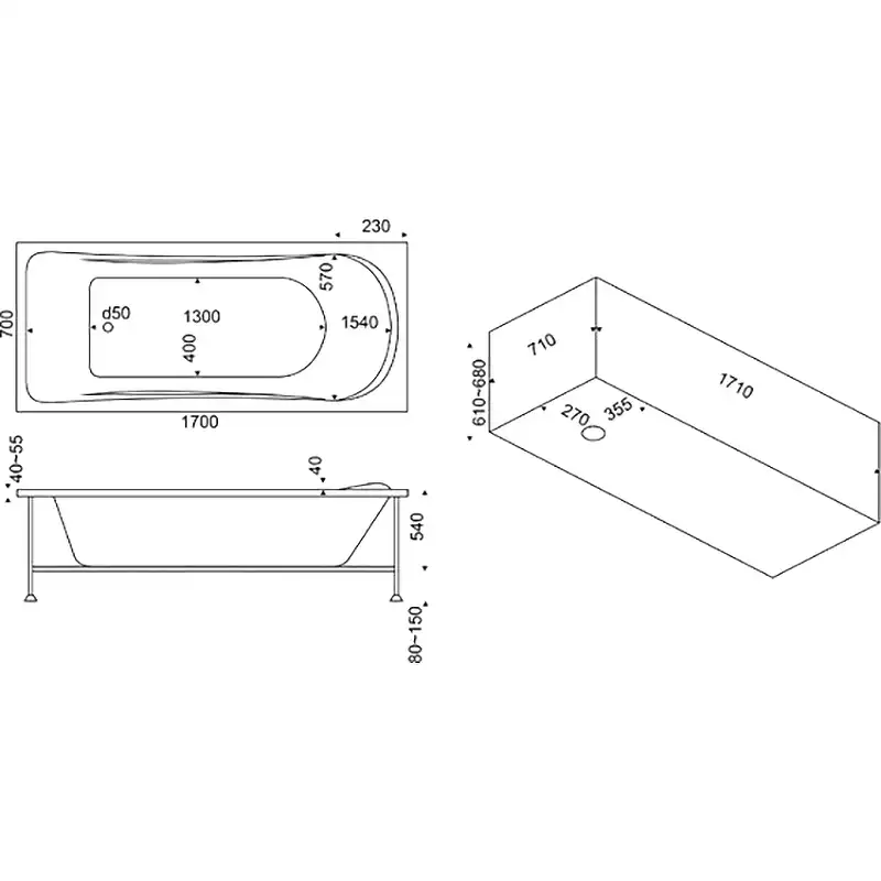 В комплекте поставки: чаша ванны, каркас.