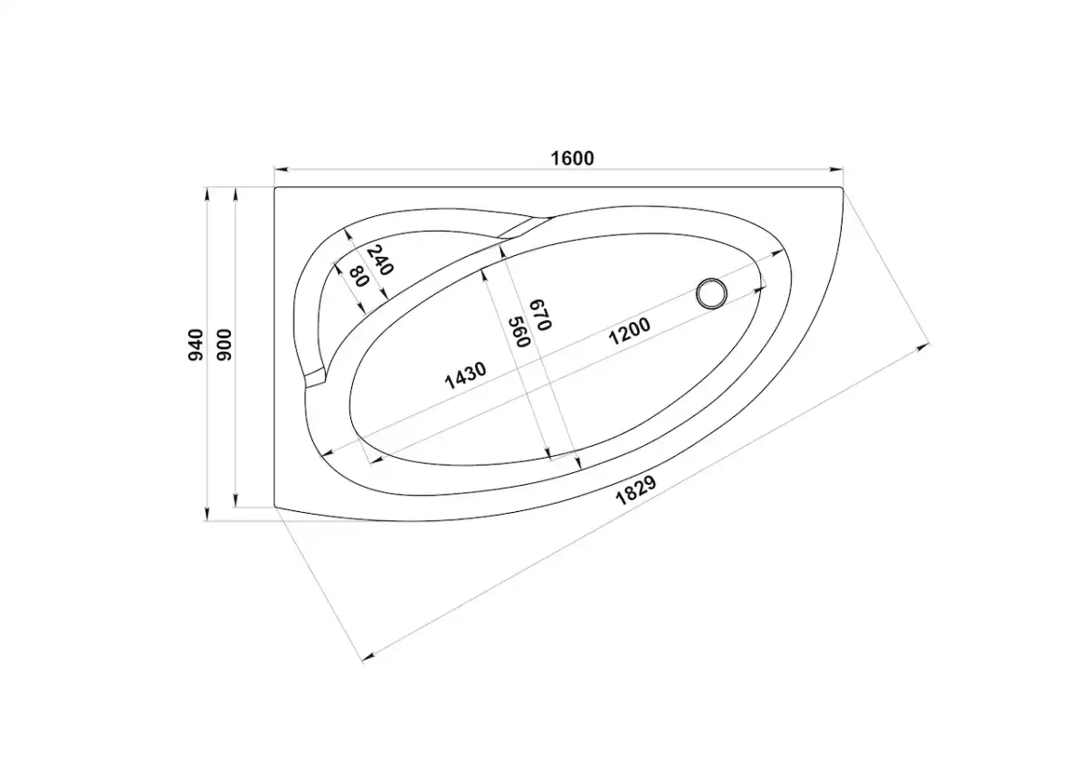Акриловая ванна Bas Сагра NEW 160х100 L без гидромассажа + разборный каркас. Слив-перелив заказывается отдельной позицией и не входит в комплект.