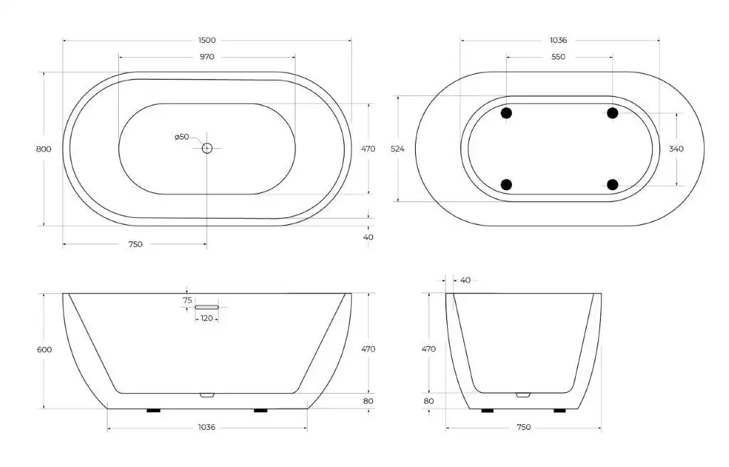 Акриловая ванна BelBagno 150х80 BB70-1500-800, отдельностоящая, в комплекте слив-перелив и каркас, Белая глянцевая.