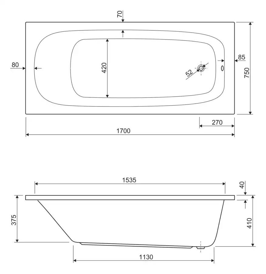 1700x750x410 мм, 175 л