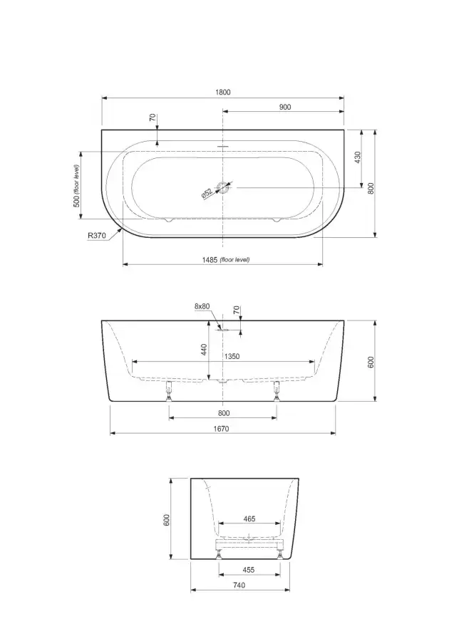 Акриловая ванна CEZARES METAURO-INT-Wall-180-80-60-G-W-MATT