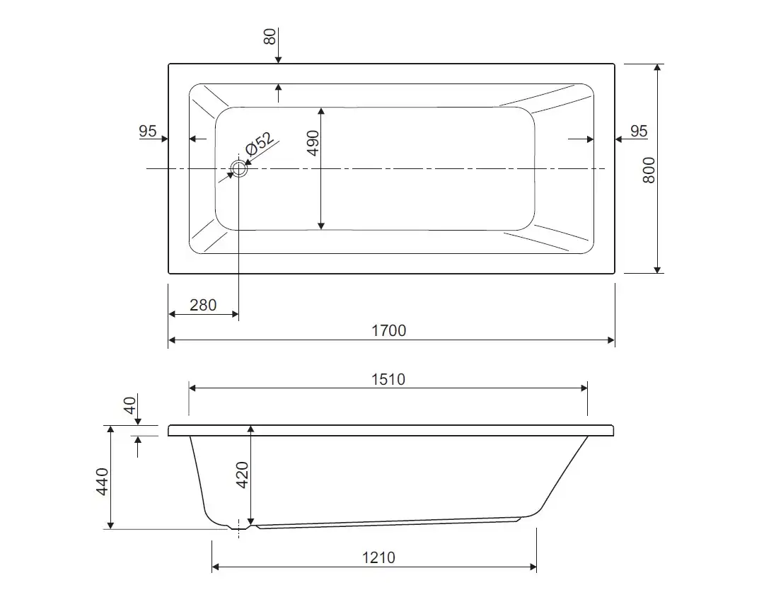 Акриловая ванна CEZARES PLANE SOLO-170-80-49-W37