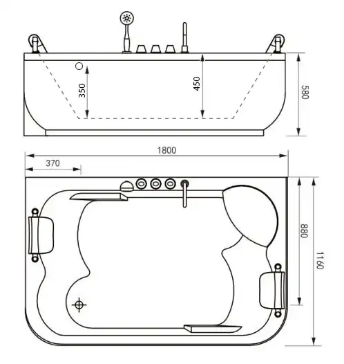 Акриловая ванна Gemy G9085 O L 180х116 с гидромассажем, левая.