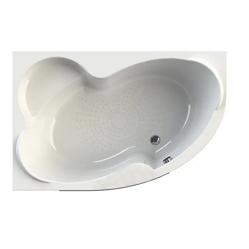 Изысканная угловая ванна Vannesa "Ирма" с асимметричным дизайном произведена из прочного акрилового листа, который обладает свойствами сохранения тепла. Ванна предназначена для правосторонней установки и имеет небольшие габариты, что позволит разместить ее на маленькой площади. Незначительные размеры ванны никак не влияют на ее объем, который включает 320 литров воды. Форма чаши выполнена в виде овала с двумя выступающими подголовниками с противоположных сторон. Сбоку предусмотрена ниша для хранения душевых принадлежностей, которая также может использоваться в качестве сиденья. Поверхность дна имеет особую рифленую структуру, которая противостоит скольжению и обеспечивает безопасность.