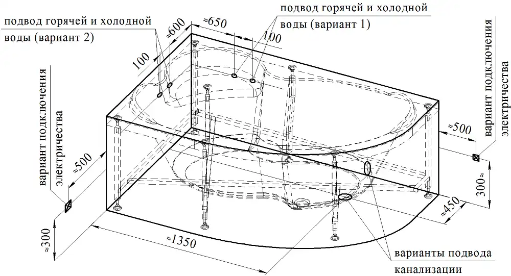 позволяют расположиться с любой стороны или принимать ванну вдвоем