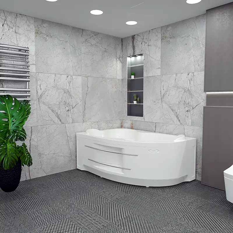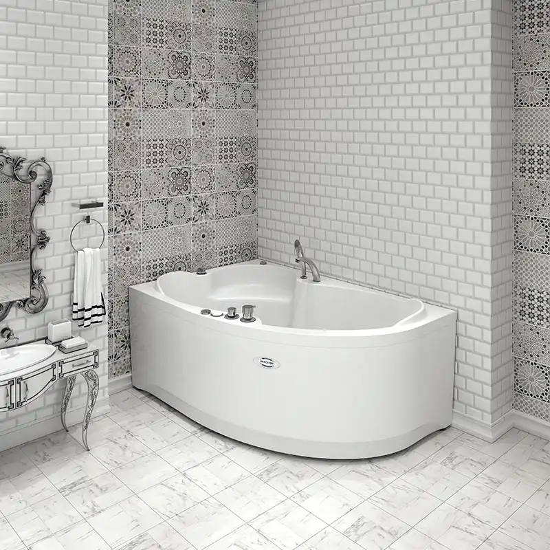 Асимметричная ванна с сиденьем "Ирма" – выбор для всех, кто привык окружать себя удобством и комфортом. Одинаково подходит семейным парам и любителям романтиков с пеной, а также семьям с детьми, которые обожают плескаться в просторной ванне. А угловая ванна с гидромассажем станет спасением для тех, кто много работает и чья жизнь связана с физическими и эмоциональными нагрузками.