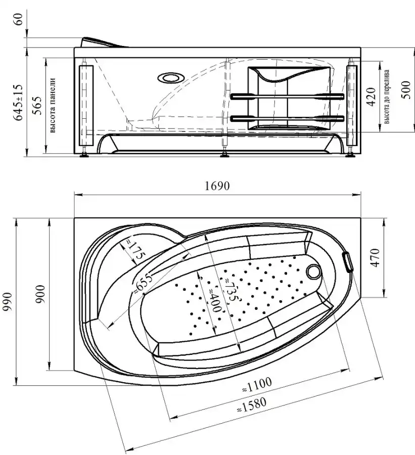 Внутренняя поверхность чаши модели "София" оснащена мягкими формами и плавными изгибами. Наклонная спинка в сочетании с выступами для рук и выступающим изголовьем позволяет принять наиболее комфортную позу. Рельефное дно ванны с технологией Radomir® Non-Slip противостои скольжению, обеспечивая безопасность.
