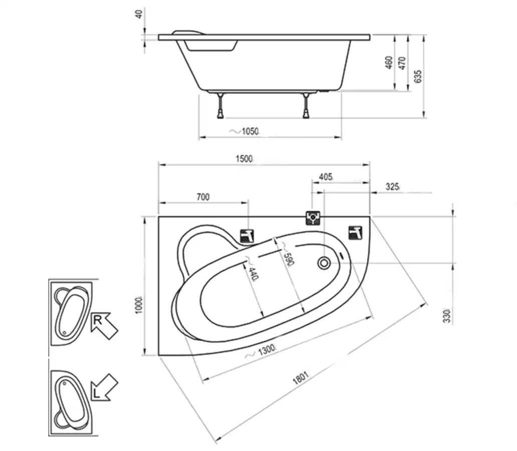 Ванна Asyммetric – практичная модель с современным дизайном. Диагональное расположение чаши позволяет удлинить ее, расширить борта, оборудовать в углу просторное интегрированное сиденье.