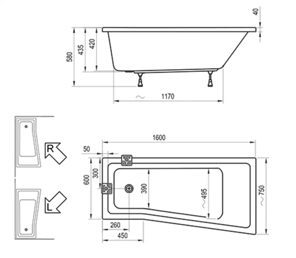 Асимметрия – это удачное дизайнерское решение и возможность комфортно оборудовать маленькую ванную комнату, что успешно доказывает ванна BeHappy II.