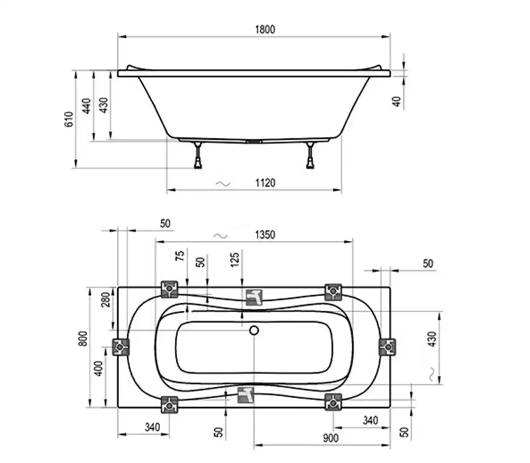 Допустимые отклонения по длине и ширине ванны составляют ± 5 мм