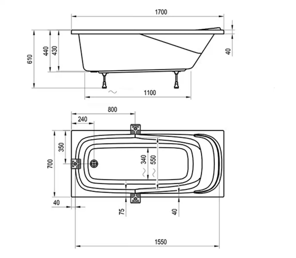 Допустимые отклонения по длине и ширине ванны составляют ± 5 мм