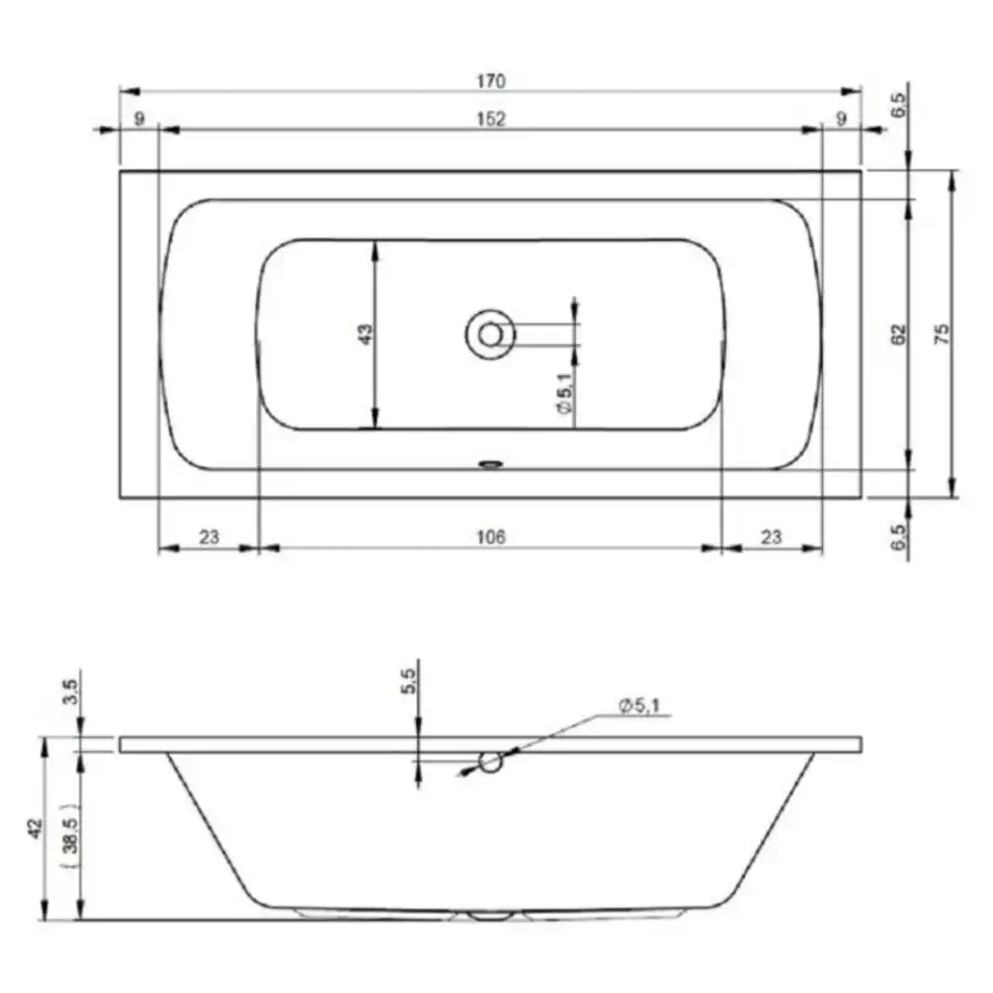 Акриловая ванна Riho Bari S 170x75 прямоугольная B047001005