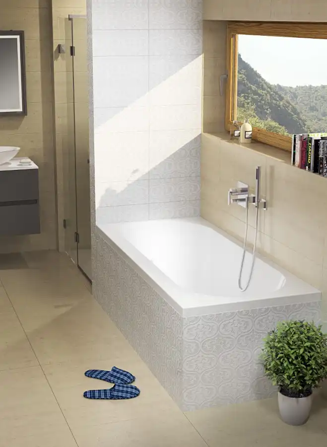 - Изготовлена из литого санитарного акрила толщиной 0,5 см. Это гладкий и теплый на ощупь материал, он не впитывает грязь и прост в уходе.