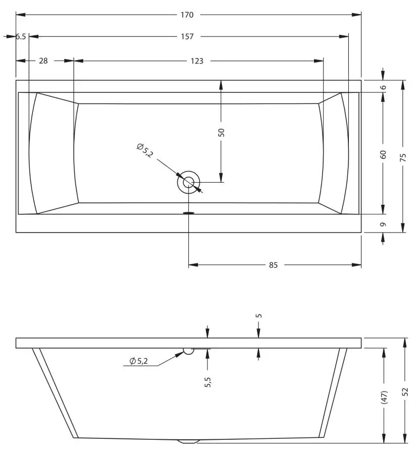 Акриловая ванна Riho JULIA 170x75 прямоугольная B011001005