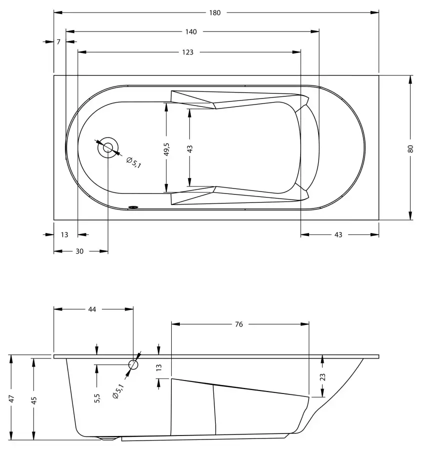Акриловая ванна Riho Lazy 180х80 L левосторонняя B083001005