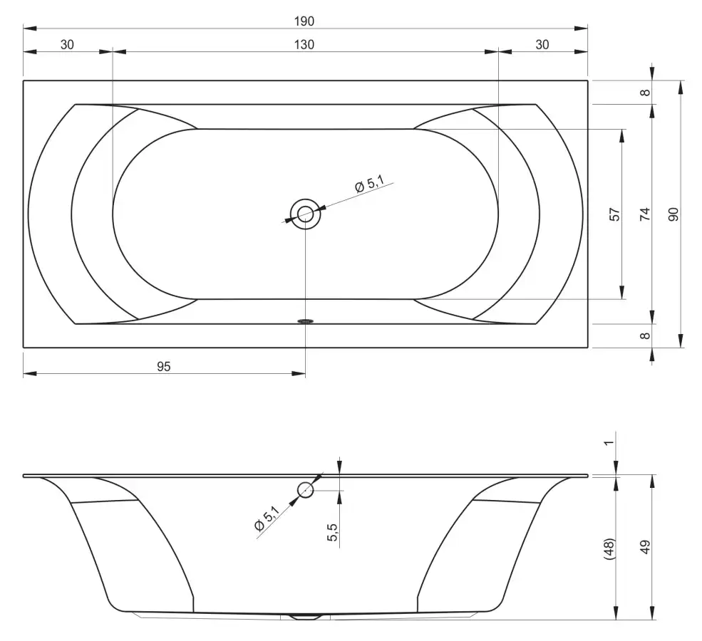 Ванна армирована стекловолокном с примесью полиэстра. Дно усилено ламинированным листом ДСП, что придает конструкции большую прочность и устойчивость.