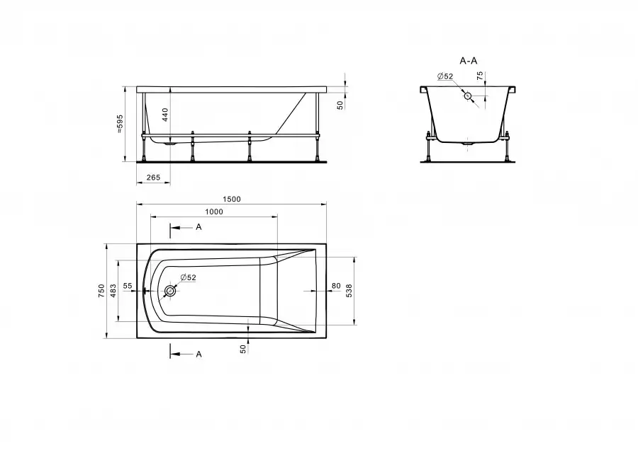 Размеры ванны 150x75 см обеспечивают простор и комфорт, позволяя полностью насладиться процессом отдыха. Интуитивная форма ванны создает идеальное положение для расслабленного отдыха, подарив вам моменты настоящего удовольствия.