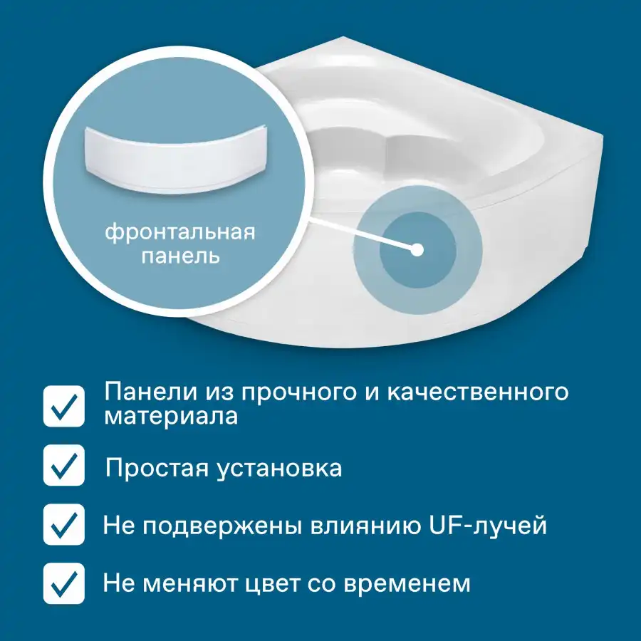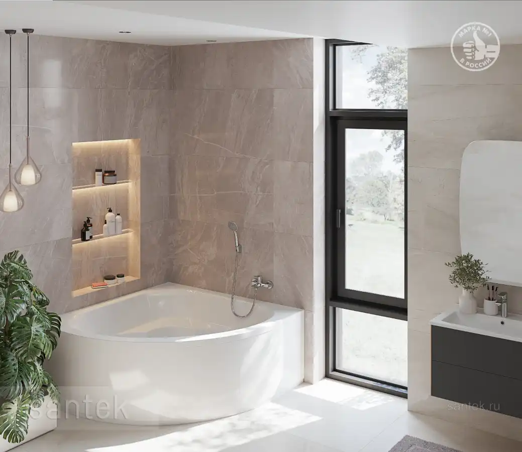 Акриловые ванны Santek долгое время сохраняют тепло, обладают стойкостью к химическим и физическим воздействиям, легки в уходе. Белоснежно-белый цвет 100% акрила идеально совпадает с цветом керамики Santek. Усовершенствованная конструкция металлического опорного каркаса ванн Santek придает надежную устойчивость конструкции, новый способ крепления панелей к ванне гарантирует привлекательный внешний вид, легкость и простоту сборки. К акриловым ваннам Santek дополнительно приобретаются фронтальные или боковые панели и монтажный комплект (каркас, система слив-перелив с сифоном, крепления ванны к стене).
