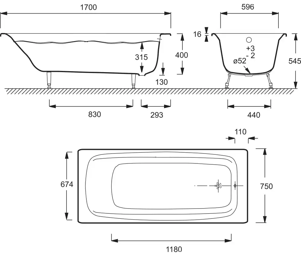 Чугунная ванна Jacob Delafon Diapason 170x75 E2937-00.
