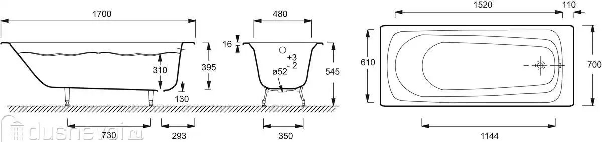 Чугунная ванна Jacob Delafon Melodie 170x70 E2922-00 с антискользящим покрытием, Белая