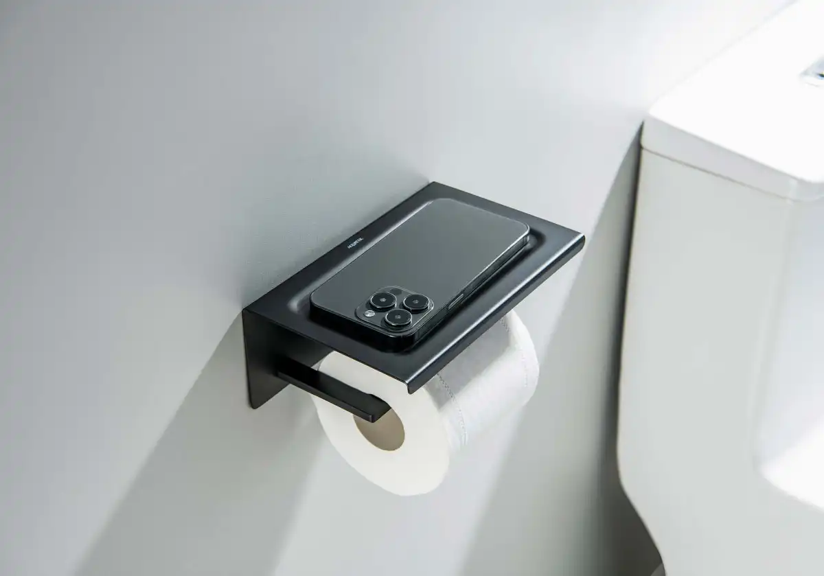 Держатель туалетной бумаги Aquatek Либра AQ4309MB с полкой, Черный матовый.