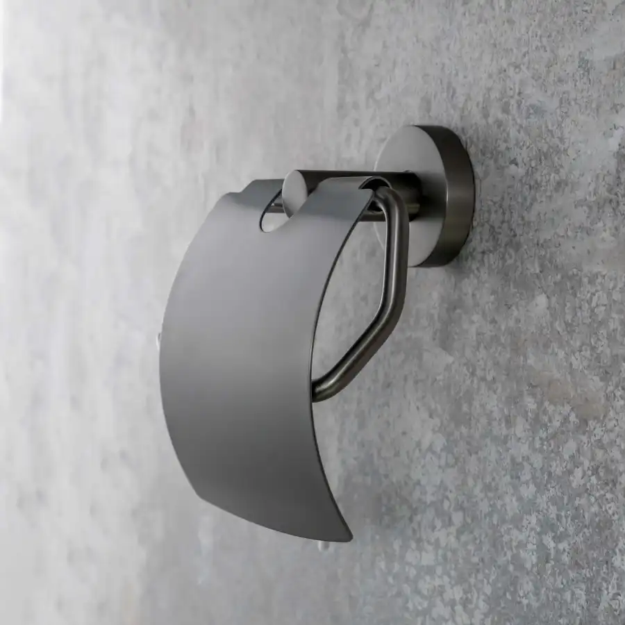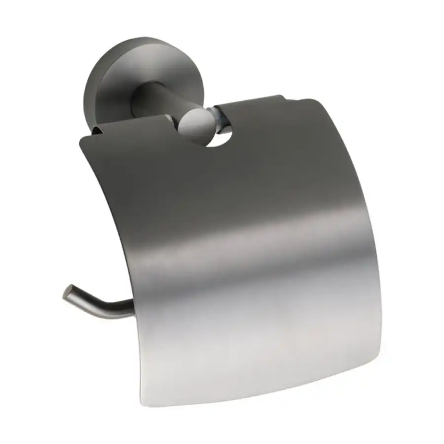 Держатель туалетной бумаги с крышкой 14 см BEMETA GRAPHIT черный в стиле люкс. Покрытие поверхности - матовое. Производство - Чехия