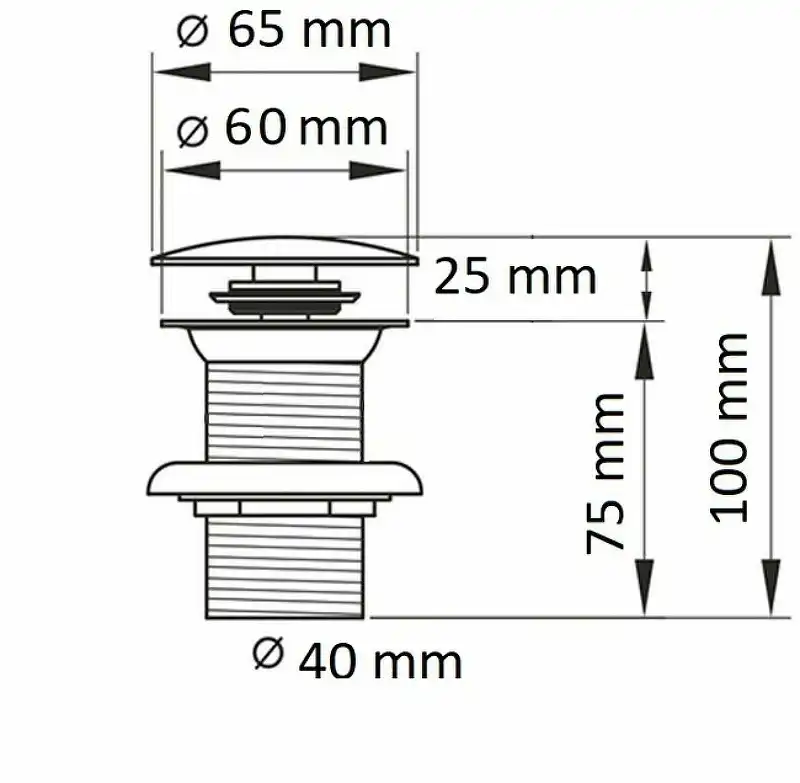 Донный клапан для раковины CeramaLux RD018 без перелива, Черный глянцевый с системой Click-Clack, управляется нажатием на пробку слива.