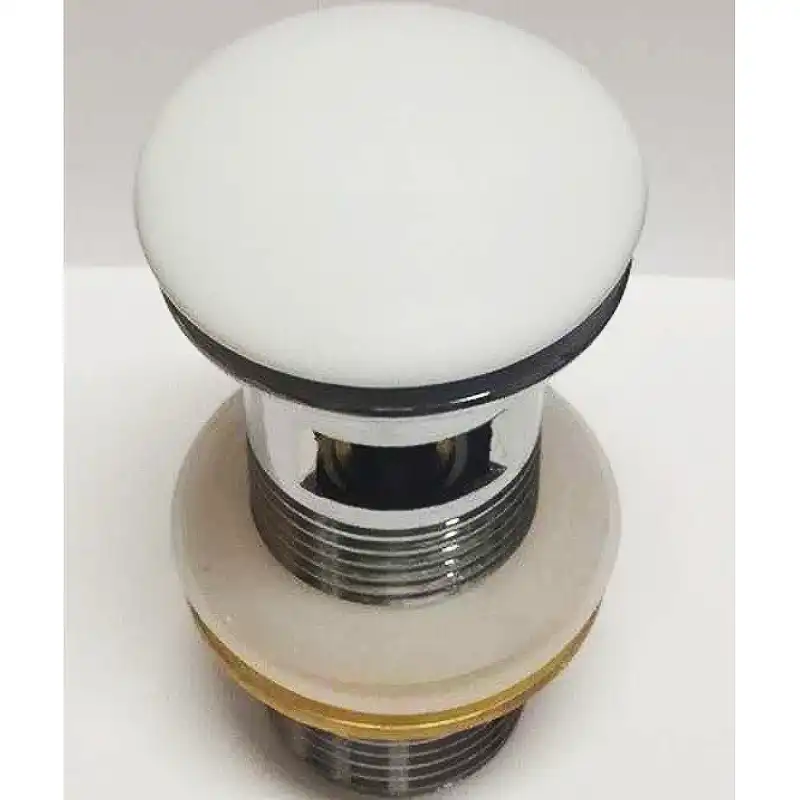 Донный клапан для раковины CeramaLux RD028MW с переливом, Белый матовый с системой Click-Clack, управляется нажатием на пробку слива.