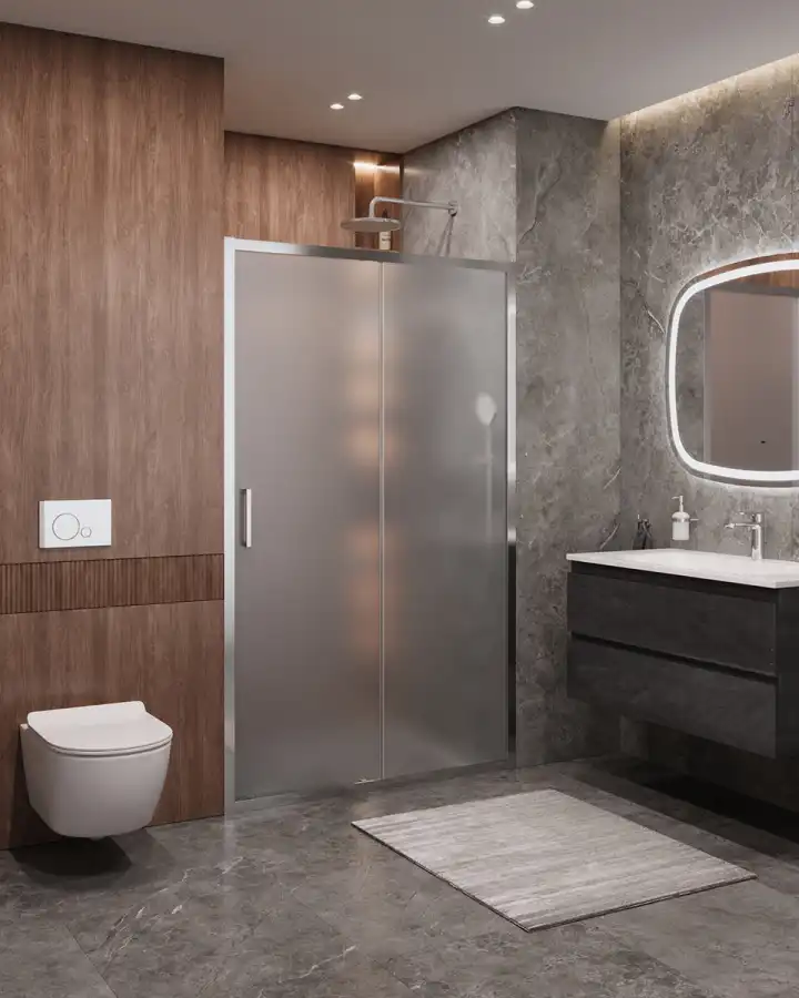 Душевая дверь CEZARES MOLVENO-BF-1-130-P-Cr профиль Хром, Матовое рифленая стекло 6 мм. Конструкция дверей - Раздвижная.