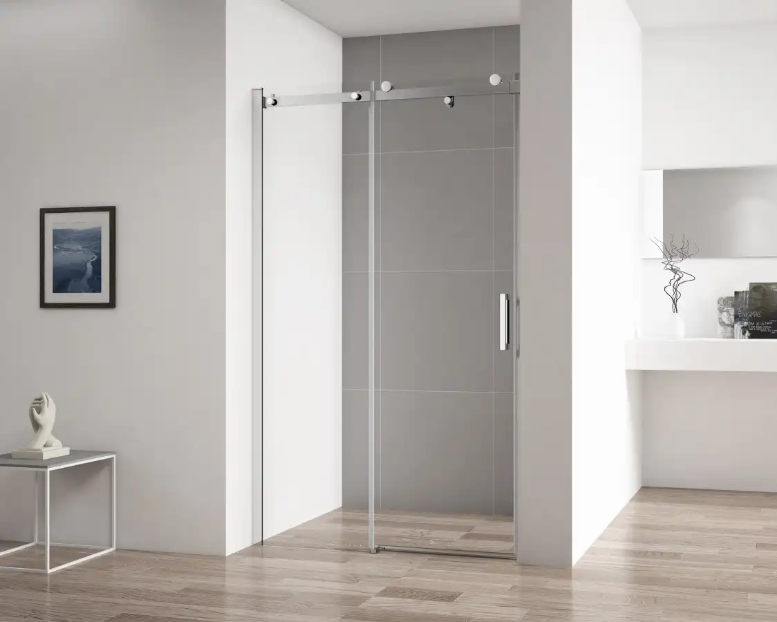 Подвижные ролики плавно скользят по металлическим направляющим. Все детали конструкции имеют оригинальное стилевое решение и являются отдельными дизайнерскими элементами, определяют неповторимый стиль ванной комнаты.