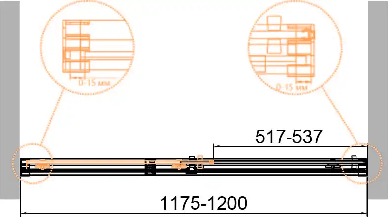 Душевая дверь с доводчиками CEZARES DUET SOFT-BF-1-120-C-Cr профиль Хром, Прозрачное стекло 8 мм. Конструкция дверей - Раздвижная.