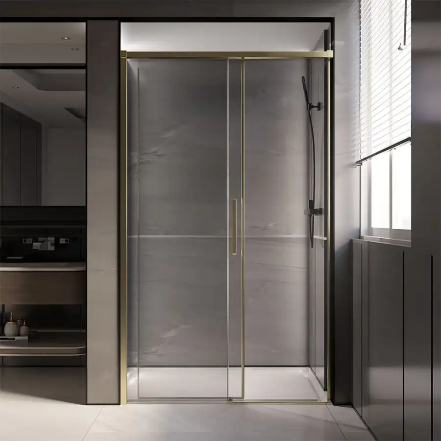 Вариант исполнения: Душевая дверь в нишу Veconi Premium Trento PTD-40G 150х200 см, PTD40-G-150-01-C4 , профиль Брашированное золото,Прозрачное закаленное стекло 8 мм. Конструкция дверей - Раздвижная.