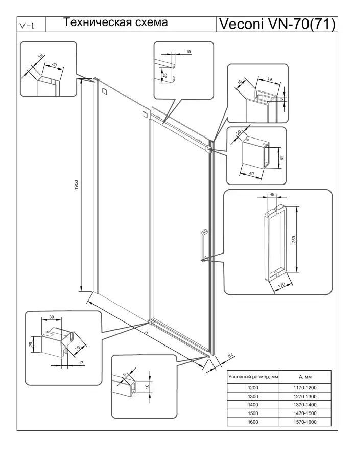 Вариант исполнения: Душевая дверь в нишу Veconi Vianno VN-70GR 150х195 см, VN70GR-150-01-C4 , профиль Брашированный графит,Прозрачное закаленное стекло 6 мм. Конструкция дверей - Раздвижная.